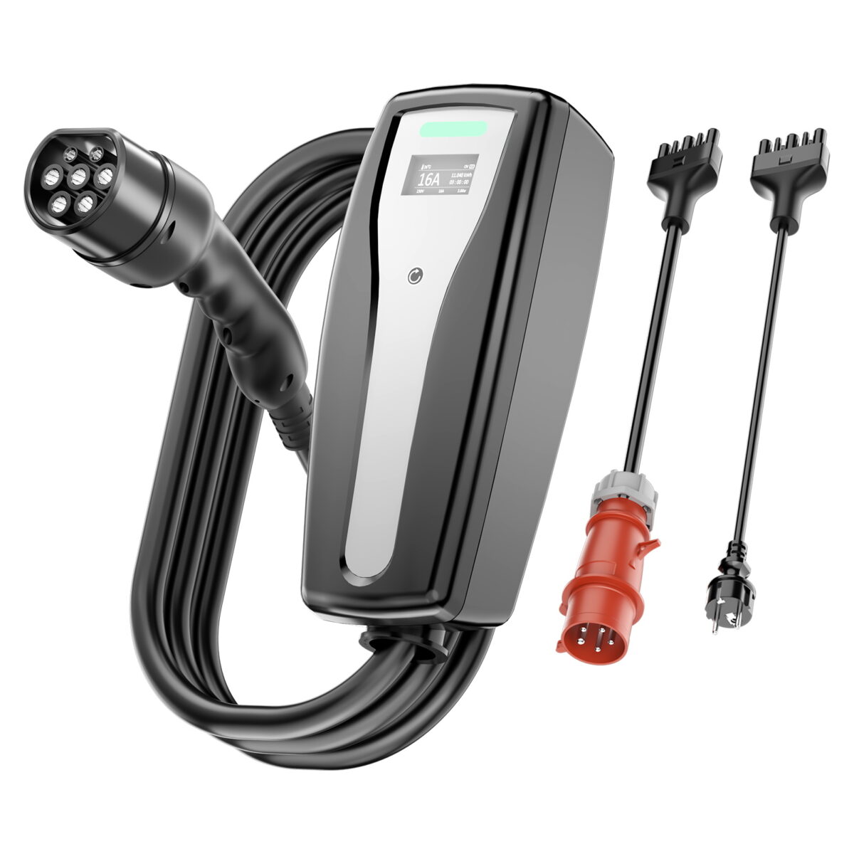 Unsere mobile Wallbox ist mit allen Elektroautos und Plug-in-Hybriden mit Typ-2- und CCS2-Steckverbindern kompatibel, einschließlich I-Pace, EQC, i3, Leaf, e-Golf, e-Up!, CITIGOe iV, Kuga PHEV, Fortwo, A250e, Kona EV, Soul EV usw.
